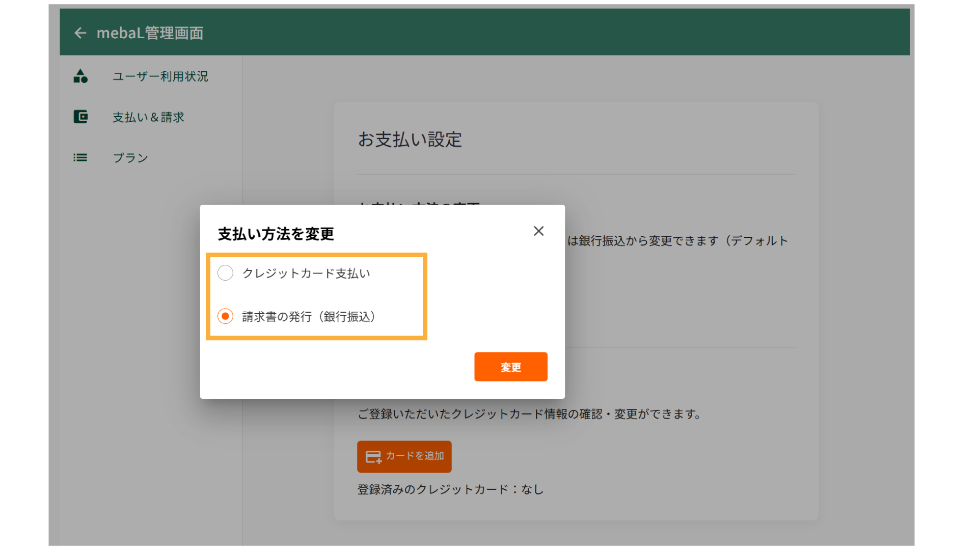 5.希望する支払方法を選択し、[変更]ボタンをクリックします。