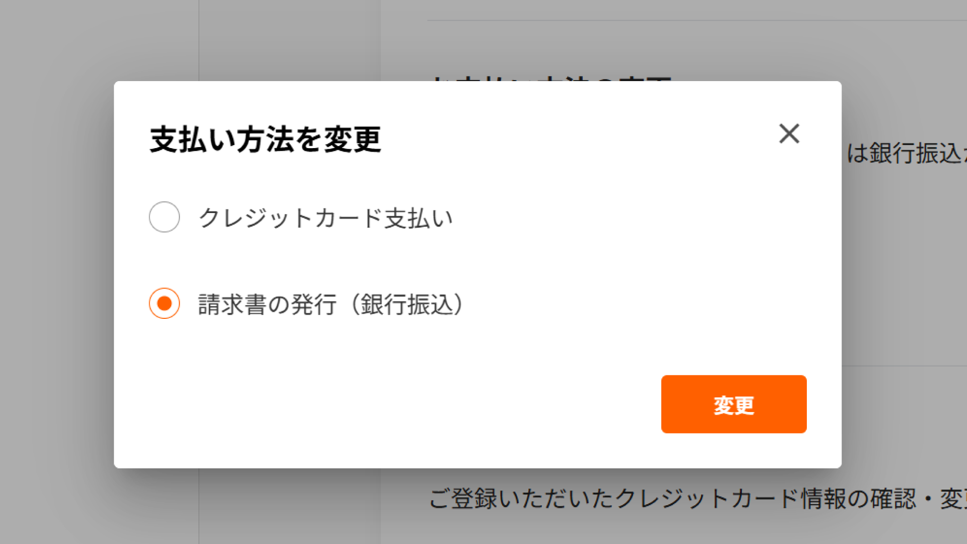 すでにサービスをご利用中のお客様で、クレジットカードから請求書払いへの変更を希望される場合は、