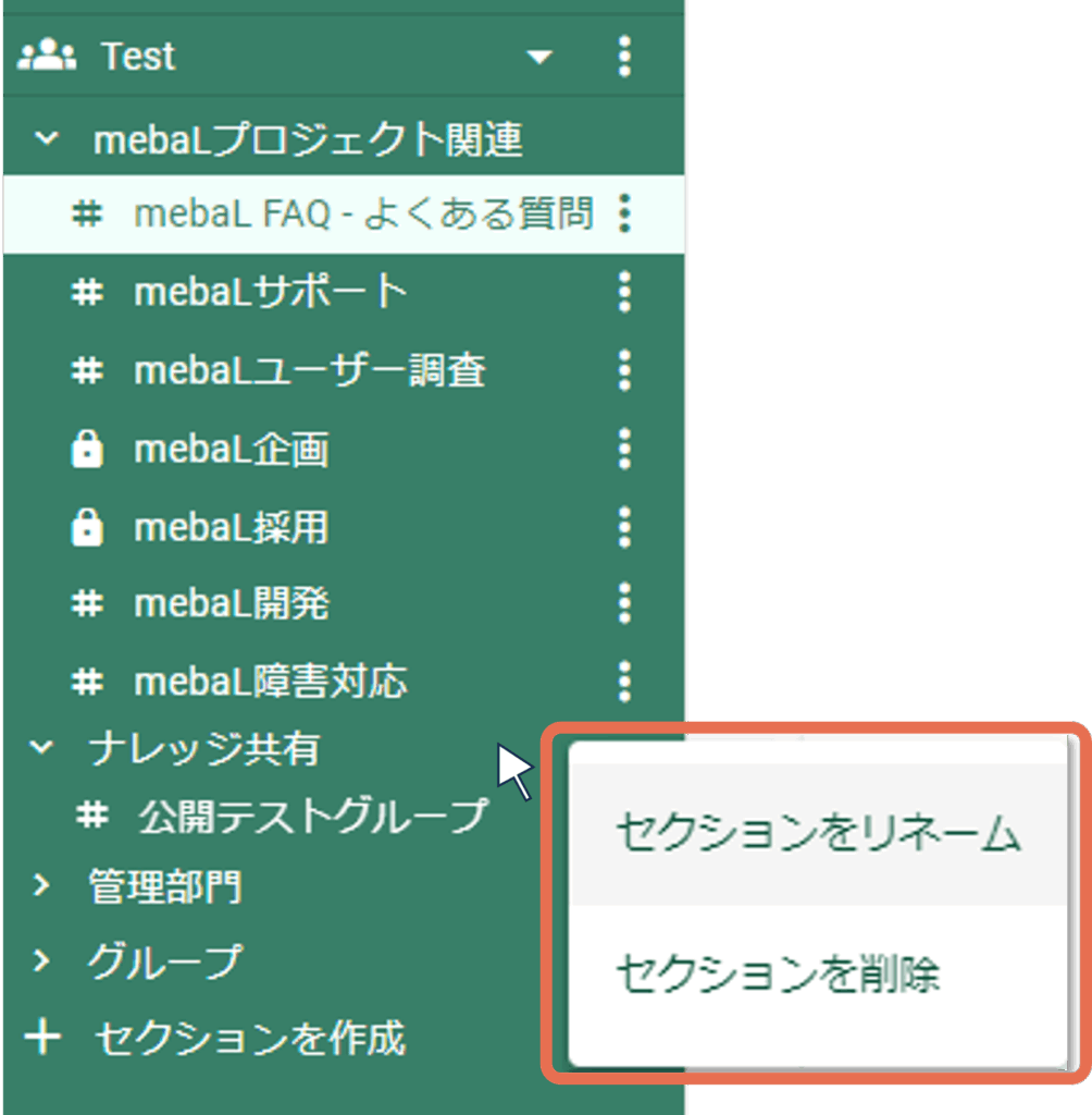 自身が作成したセクションはいつでも名前を変更することができます。