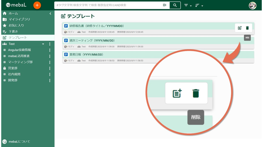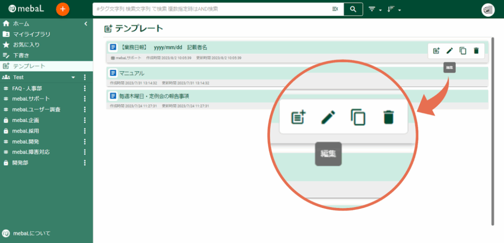 (※他のユーザーが追加したテンプレートは編集できませんので、「テンプレートコピー」を利用し自身のデータとして新たに作成し編集を行ってください。)