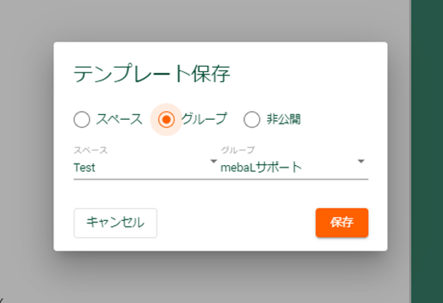 3.テンプレートの追加先(共有先)を選択し、「保存」ボタンを押下します。
