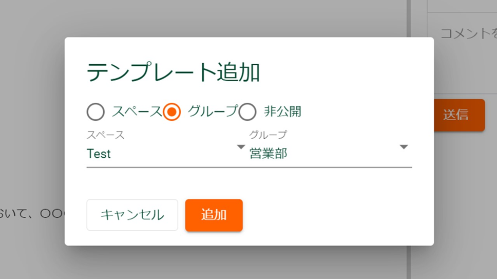 2.テンプレートの追加先(共有先)を選択し、「追加」ボタンを押下します。